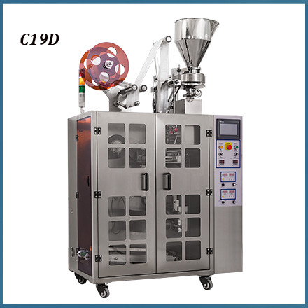 C19D drip coffee bag packaging machine is suitable for Drip coffee bag with outer envelope, available with Coffee, tea leaves, herbal tea, health care tea, roots, and other small granule products.